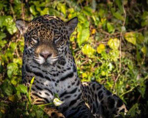 And here we are with a clear view of one of those jaguars. We stop to observe, to take in every detail of this amazing cat.
