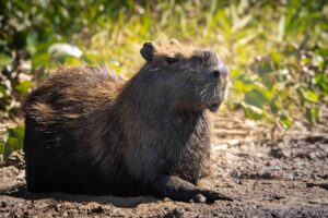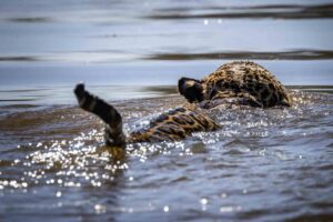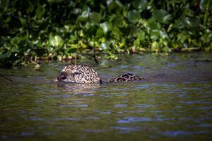 We lose him in the bush, once again, and move on to a capybara swimming along the river’s edge.