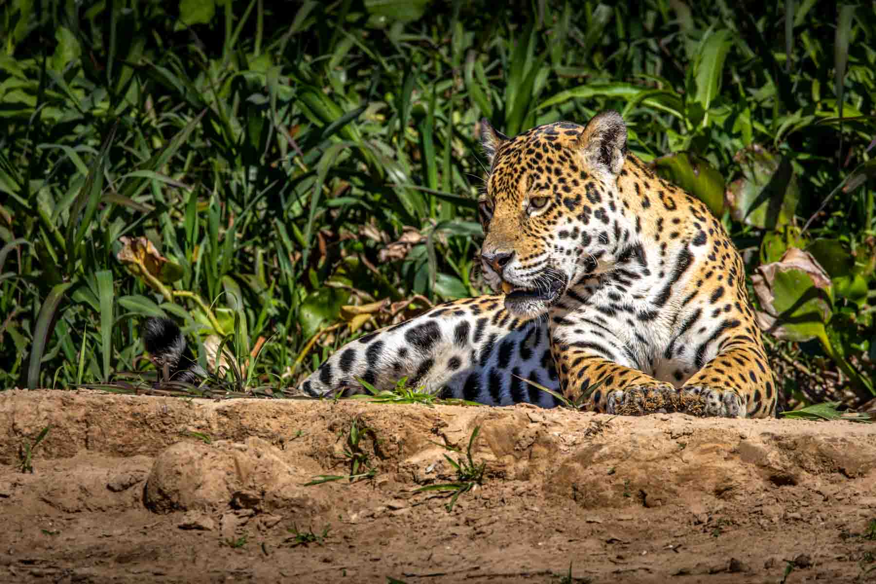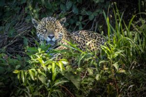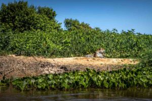 We move on and within half an hour see a jaguar resting in a gully at the waters’ edge.
