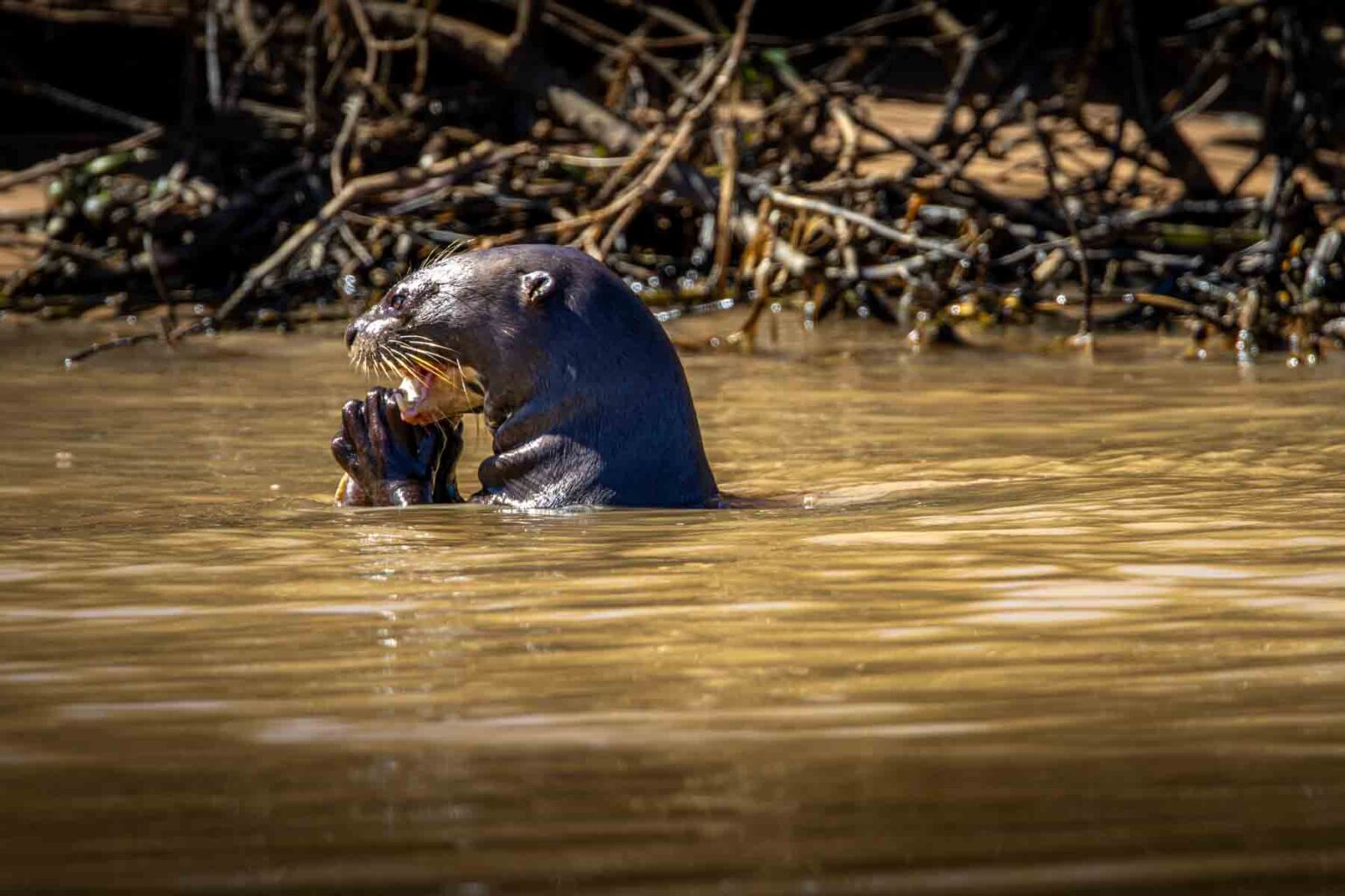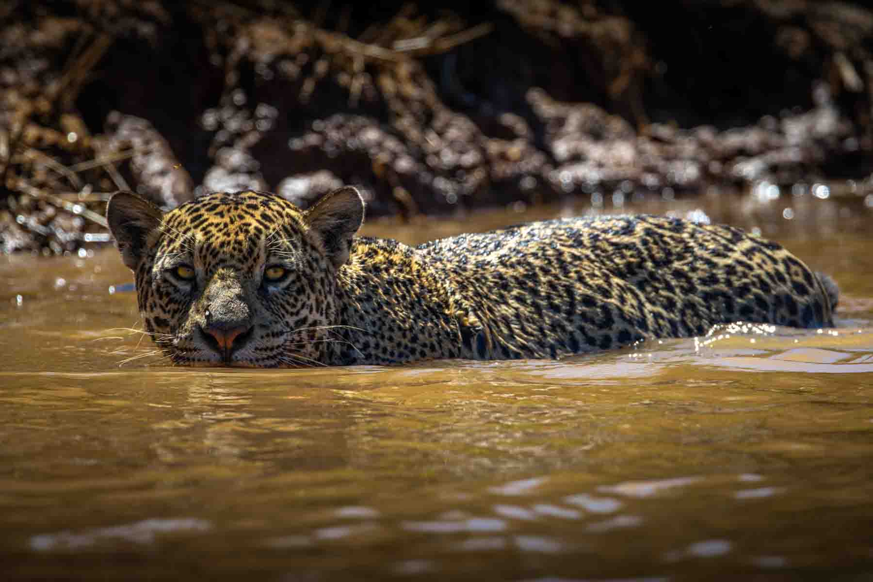 Ousado hunts by going under water. He’s the only jaguar in the Pantanal that hunts this way.